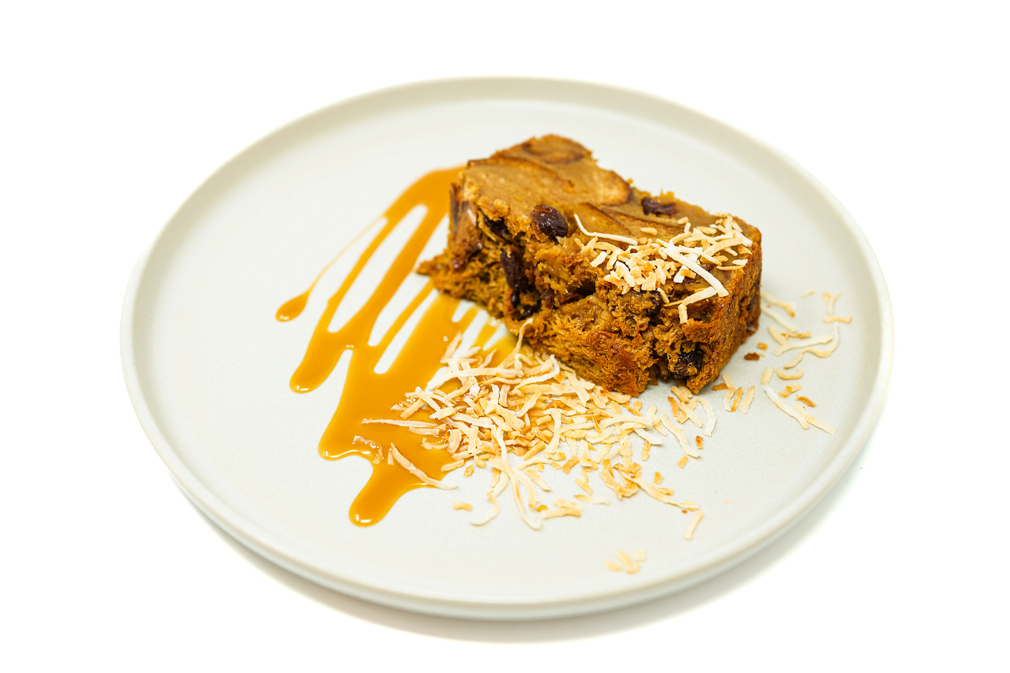 Coconut Caramel Raisin Bread Pudding